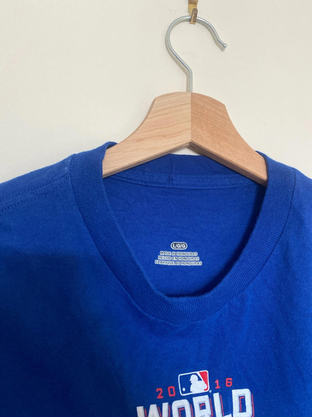 MLB Chicago Cubs Champions T-shirt in size large. Excellent overall condition with a small stain as shown in the second picture. Blue in colour.