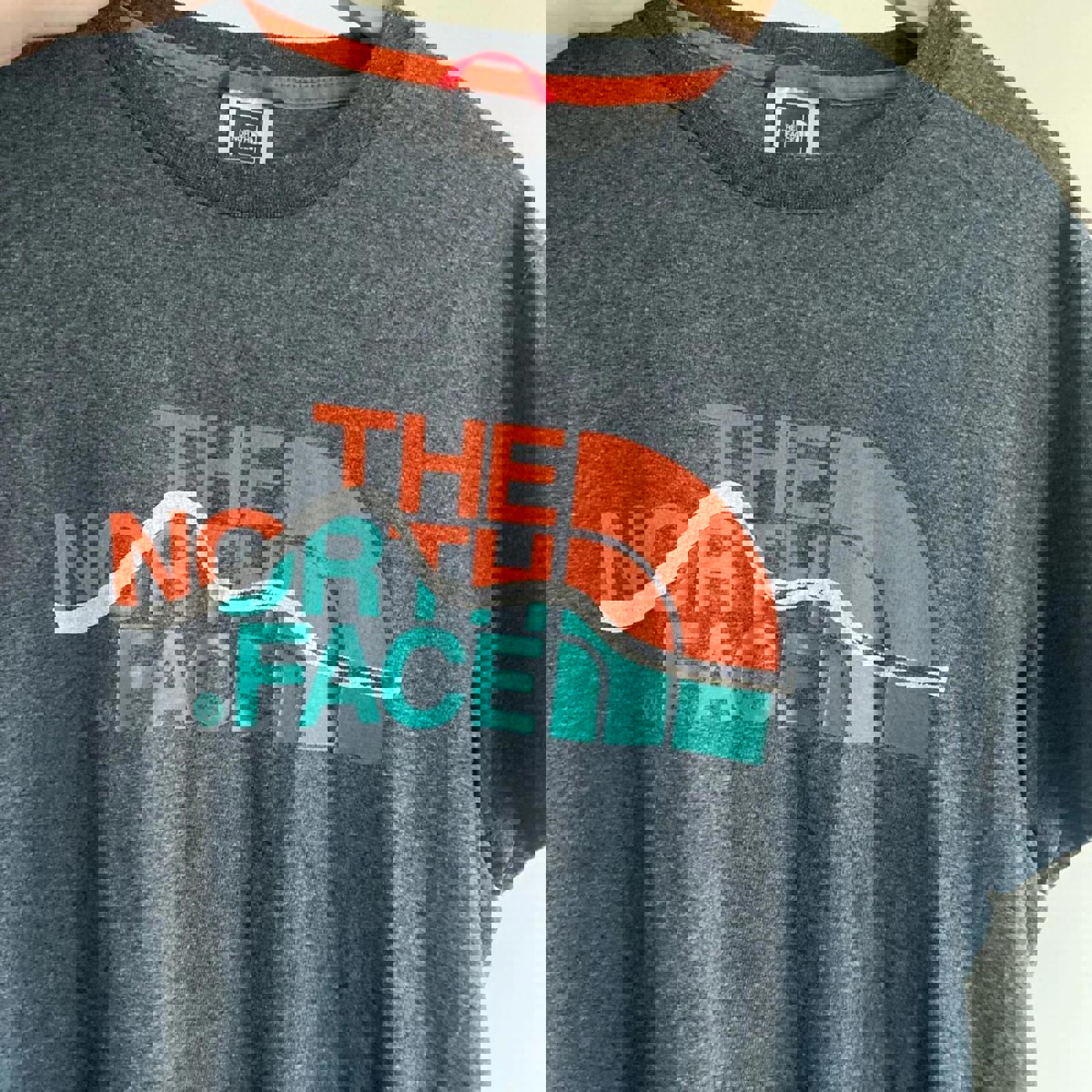 Men’s The North Face small T-shirt in grey. Good condition, with some peeling to the print and no other flaws.